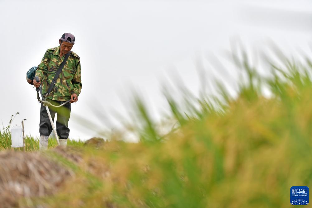 9月8日,農民在沈陽(yáng)市沈北新區興隆臺街道青年農場(chǎng)稻田里除雜草。