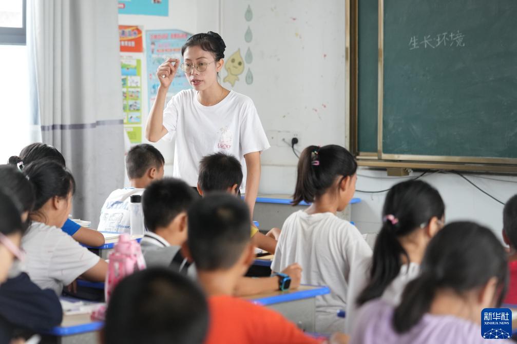 9月7日,陳艷輝在湖南省株洲市茶陵縣界首中心小學(xué)給學(xué)生上語(yǔ)文課。新華社記者 薛宇舸 攝