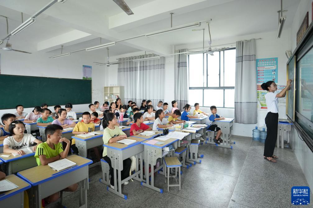 9月7日,陳艷輝在湖南省株洲市茶陵縣界首中心小學(xué)給學(xué)生上語(yǔ)文課。新華社記者 薛宇舸 攝