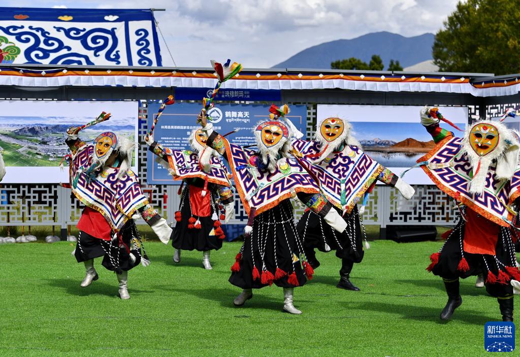 在拉薩市林周縣邊交林鄉當杰村,演員在第十六屆西藏珠穆朗瑪攝影大展開(kāi)幕式上表演節目(9月8日攝)。