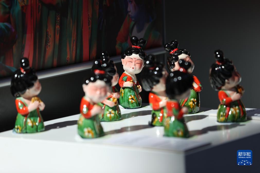 這是9月8日在比利時(shí)布魯塞爾漫畫(huà)節中國館展區拍攝的唐三彩玩偶。