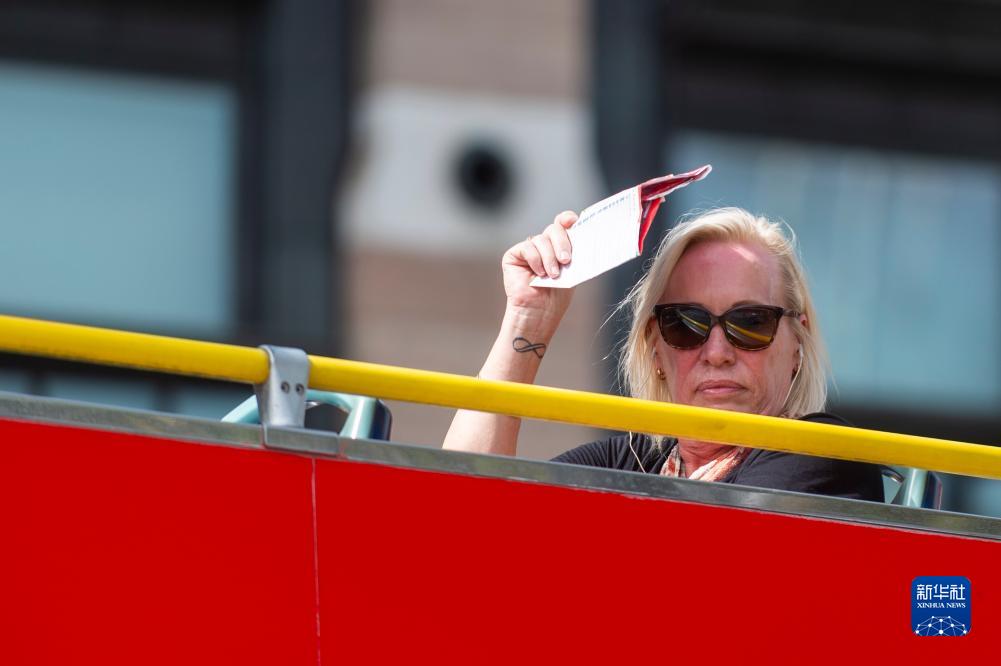 9月6日,一名女子在英國倫敦乘坐觀(guān)光巴士。