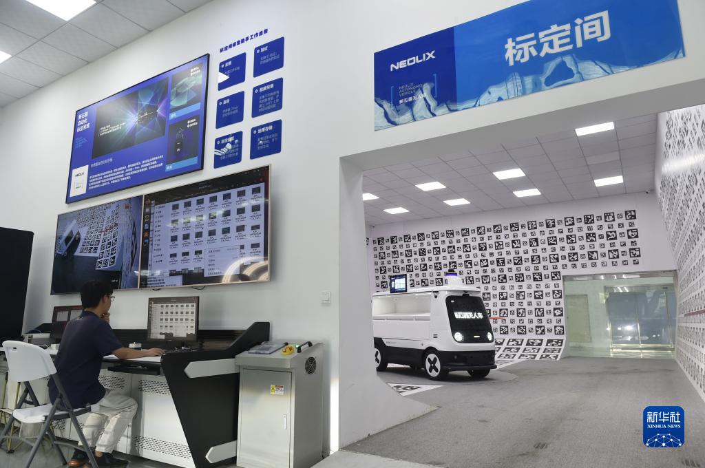 9月8日,河南省安陽(yáng)市安陽(yáng)縣一家無(wú)人車(chē)制造企業(yè)的工作人員在車(chē)間內作業(yè)。