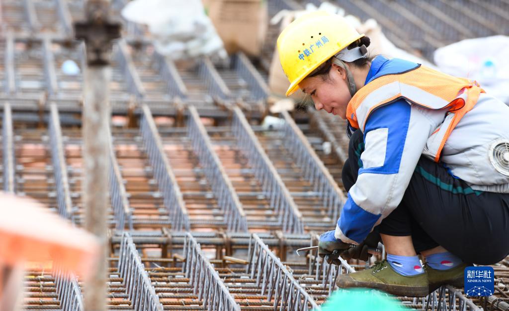 9月9日,工人在??谛潞8酆湍细邸岸€(xiàn)口岸”(貨運)集中查驗場(chǎng)所建設項目上施工作業(yè)。