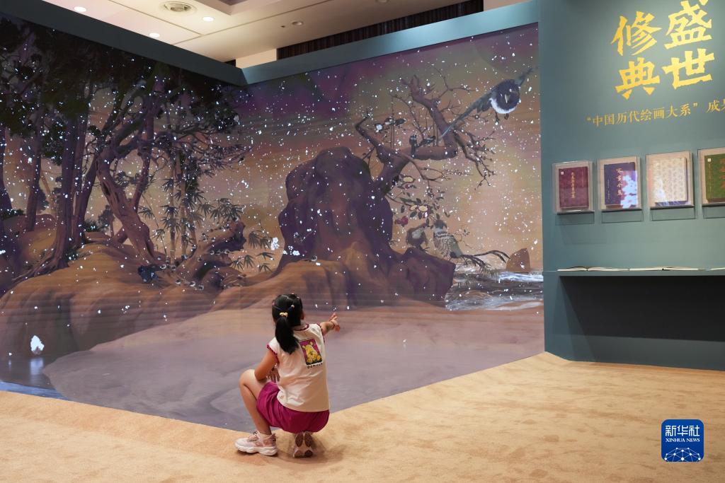 9月9日,小朋友在大道之行——“八八戰略”實(shí)施20周年大型主題展覽上觀(guān)看“盛世修典”項目的視頻介紹。