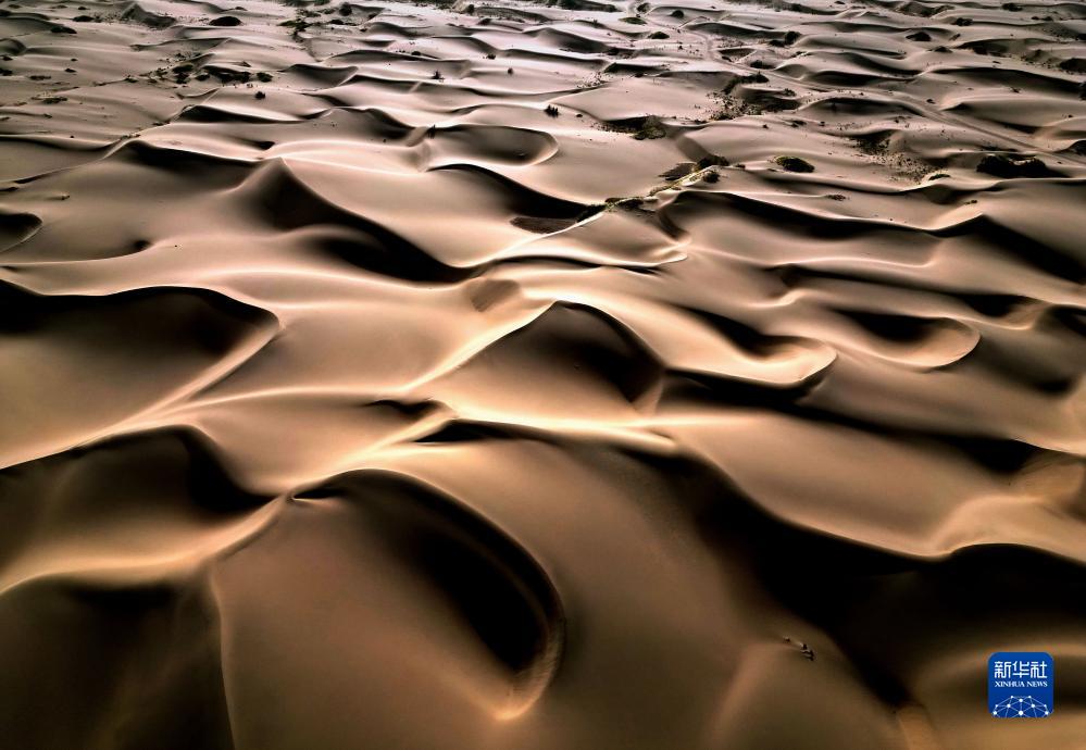 這是9月7日在新疆喀什地區麥蓋提縣N39°沙漠旅游景區拍攝的沙漠風(fēng)光(無(wú)人機照片)。