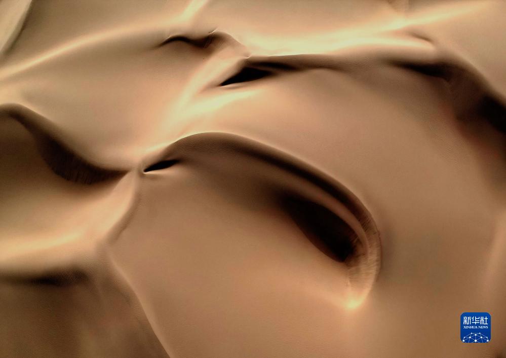這是9月7日在新疆喀什地區麥蓋提縣N39°沙漠旅游景區拍攝的沙漠風(fēng)光(無(wú)人機照片)。