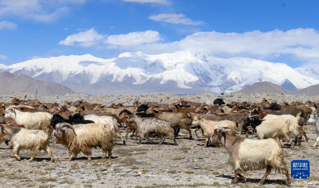 在“冰川之父”慕士塔格峰腳下,新疆塔什庫爾干塔吉克自治縣塔合曼鄉境內的一片天然草場(chǎng)吸引周邊鄉村的牧羊人在此放牧。進(jìn)入秋季以來(lái),草場(chǎng)漸漸泛黃,屹立于遠處的慕士塔格峰和公格爾九別峰在藍天白云的映襯下格外壯美,一幅寧靜悠遠的牧羊圖引人入勝。