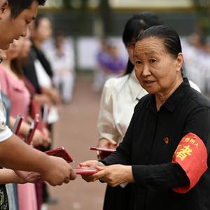 清晨六點(diǎn)多,年過(guò)七旬的天津市津英中學(xué)校長(cháng)張慧穎早早站在學(xué)校大門(mén)口,用微笑迎接學(xué)生的到來(lái)。她衣著(zhù)樸素大方,手臂上掛著(zhù)醒目的袖標,在一聲聲“同學(xué),你好!”的問(wèn)候中開(kāi)啟學(xué)校新的一天。
