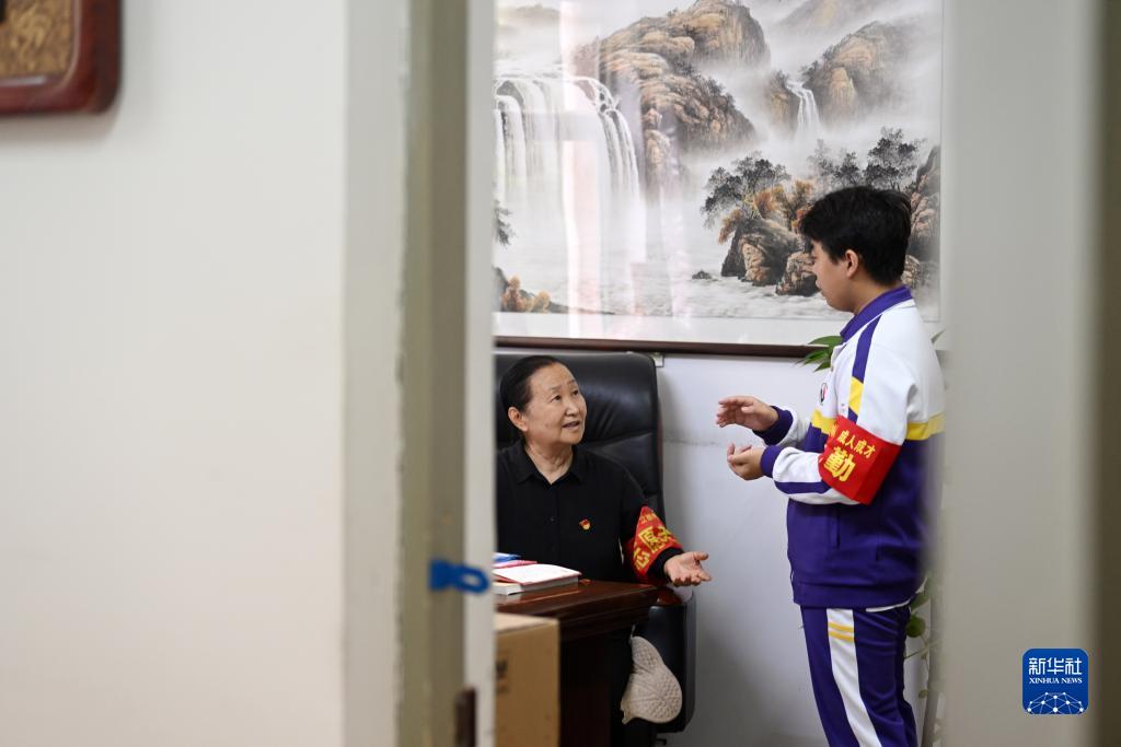 張慧穎在津英中學(xué)的辦公室里和學(xué)生交流(9月8日攝)。