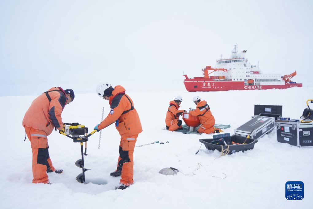 這是在北極點(diǎn)附近的冰站調查作業(yè)現場(chǎng)(9月5日攝)。