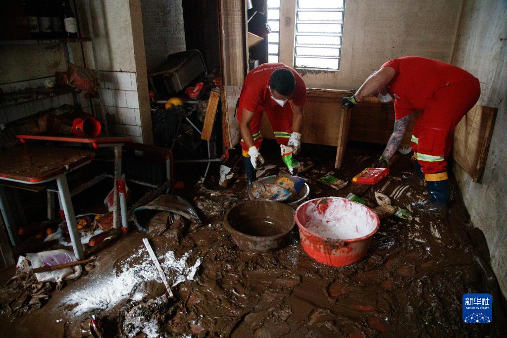 9月9日,救援人員在巴西南里奧格蘭德州穆孫市清理一所學(xué)校。