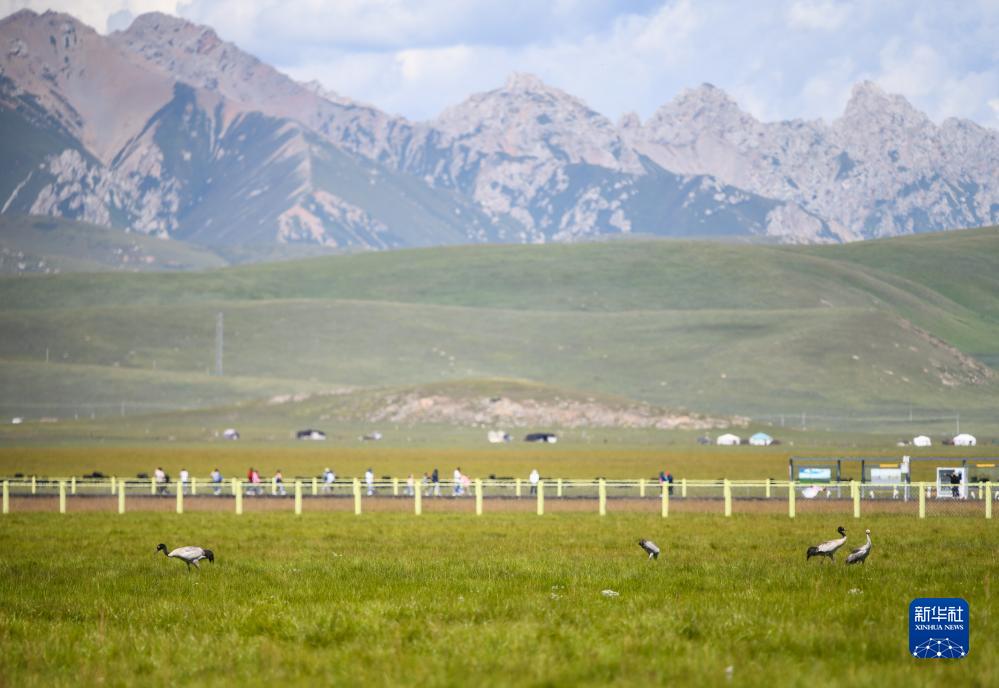這是8月22日在四川省阿壩藏族羌族自治州若爾蓋縣花湖拍攝的黑頸鶴,目前黑頸鶴種群數量突破2000只。