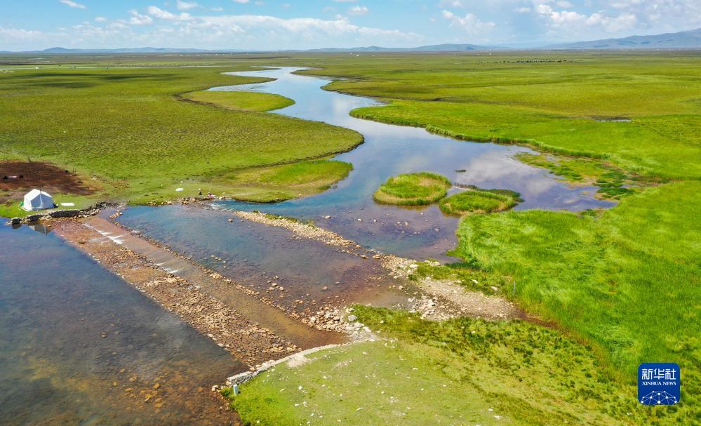 這是8月22日在四川省阿壩藏族羌族自治州若爾蓋縣花湖濕地拍攝的生態(tài)堤壩(無(wú)人機照片)。