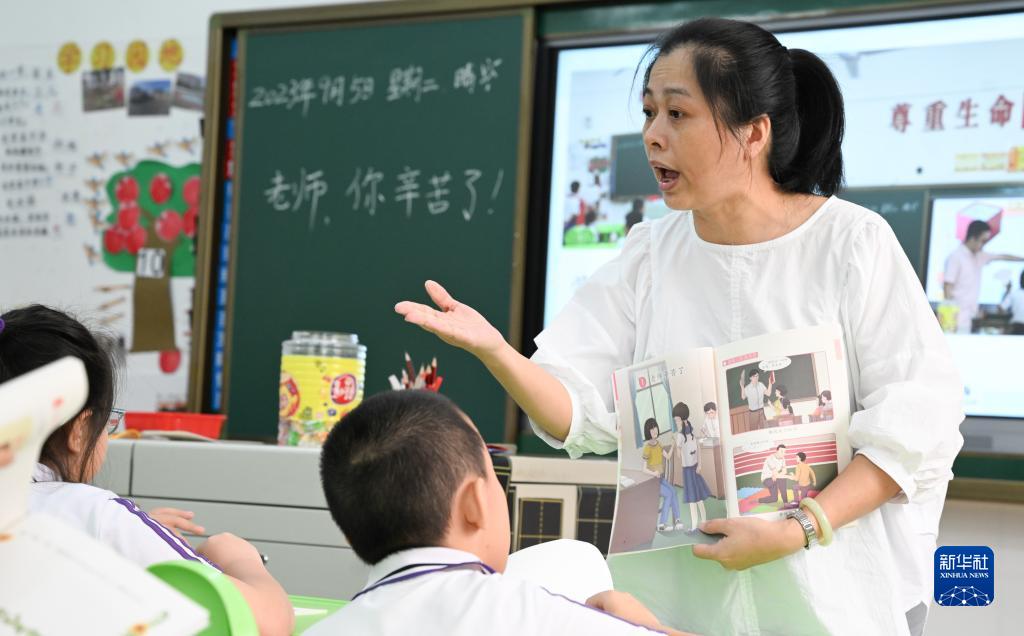 在海南(??冢┨厥饨逃龑W(xué)校啟智三(1)班,班主任符堯惠為學(xué)生們上課(9月5日攝)。