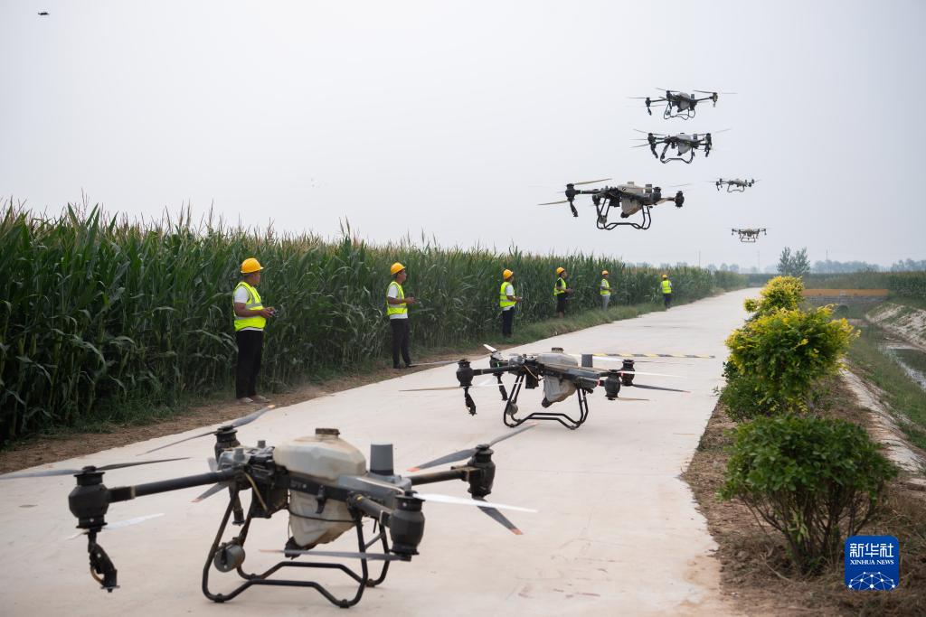 9月9日,樂(lè )陵市孔鎮鎮飛防作業(yè)社會(huì )化服務(wù)團隊在“噸半糧”核心區內進(jìn)行飛防。