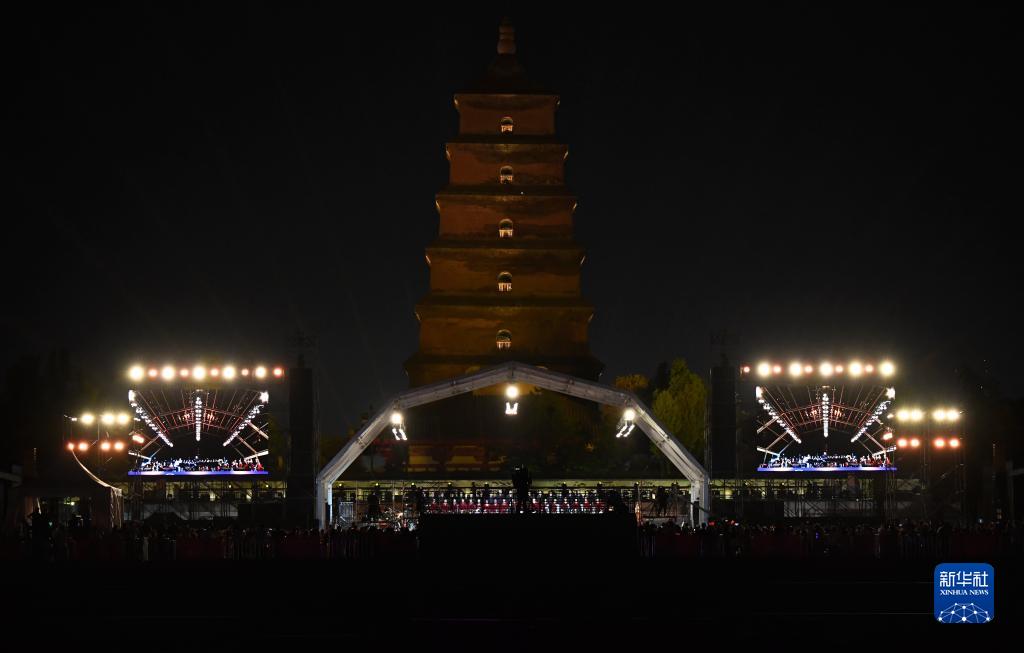 9月10日晚,西安交響樂(lè )團在西安大雁塔北廣場(chǎng)戶(hù)外公演。