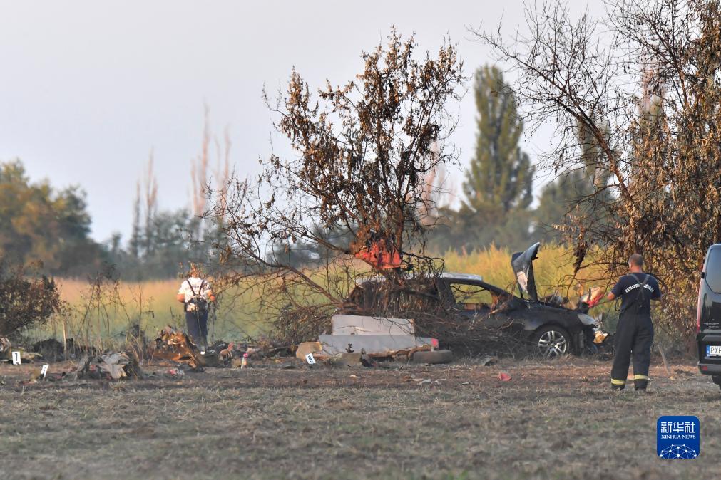 這是9月10日在匈牙利塞克什白堡附近的博爾貢德機場(chǎng)拍攝的飛機墜毀現場(chǎng)。
