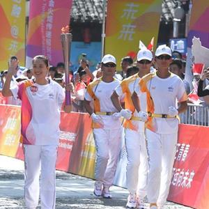 9月11日,火炬手俞覺(jué)敏在火炬傳遞中。