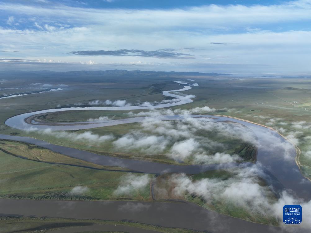 這是8月24日在四川省阿壩藏族羌族自治州若爾蓋縣唐克鎮拍攝的黃河九曲第一灣景色(無(wú)人機照片)。
