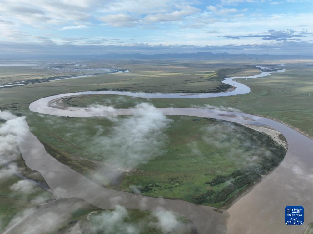 這是8月24日在四川省阿壩藏族羌族自治州若爾蓋縣唐克鎮拍攝的黃河九曲第一灣景色(無(wú)人機照片)。