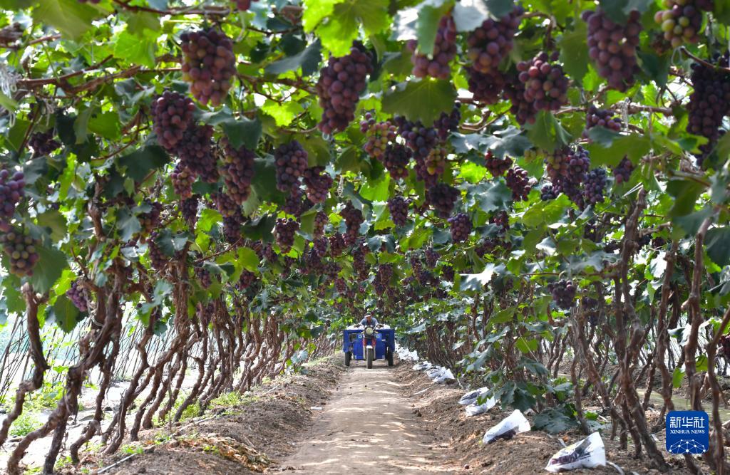 近日,遼寧省燈塔市種植的遼峰葡萄喜迎豐收。燈塔市出產(chǎn)的遼峰葡萄遠近聞名,目前種植面積約1萬(wàn)畝。當地已形成葡萄培育、種植、銷(xiāo)售、倉儲、加工相關(guān)產(chǎn)業(yè)鏈,葡萄是當地農民致富增收的特色產(chǎn)業(yè)。