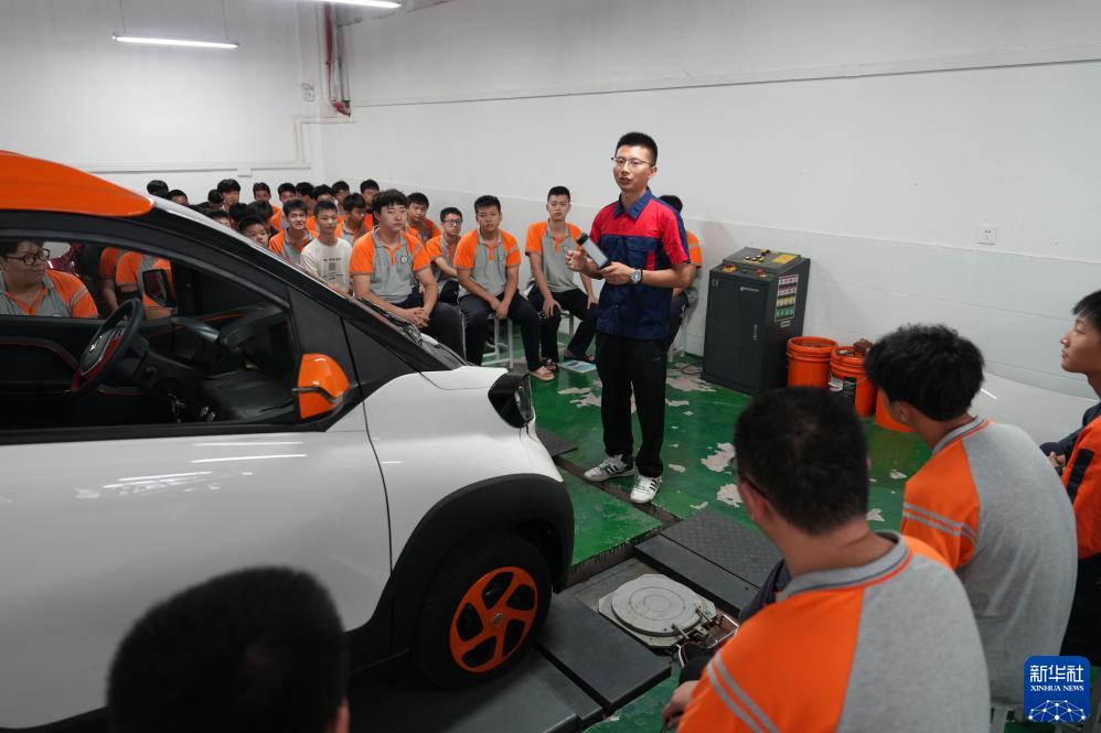 9月12日,在重慶市北碚區職業(yè)教育中心新能源汽修實(shí)訓室,教師在給學(xué)生講解新能源汽車(chē)維修知識。