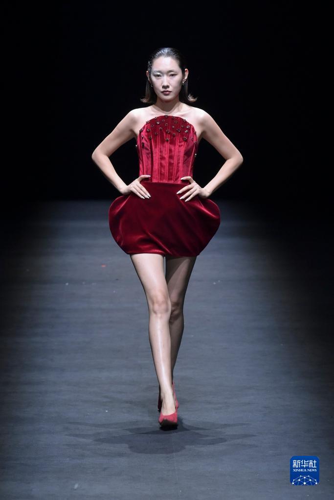 9月12日,模特展示設計師任柯明設計的時(shí)裝。