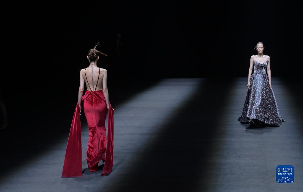 9月12日,模特展示設計師任柯明設計的時(shí)裝。