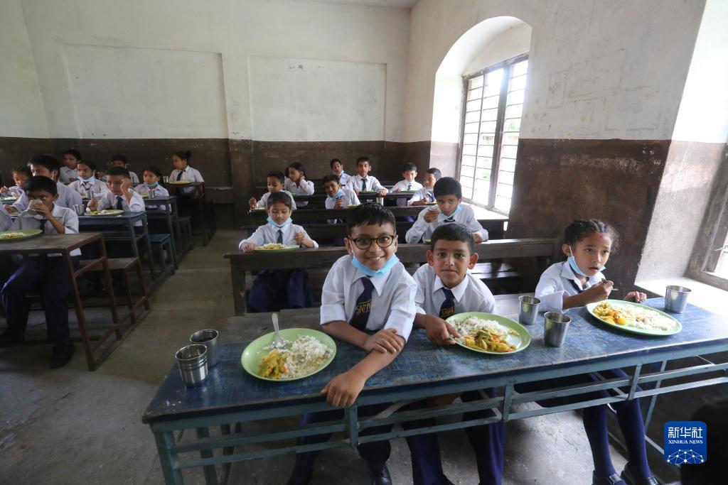 這是2022年7月11日,在尼泊爾加德滿(mǎn)都,學(xué)生在微笑兒童項目啟動(dòng)儀式后就餐。由“全球發(fā)展和南南合作基金”支持的微笑兒童項目啟動(dòng)儀式7月11日在尼泊爾首都加德滿(mǎn)都一所中學(xué)舉行,項目惠及3600名尼泊爾學(xué)生。