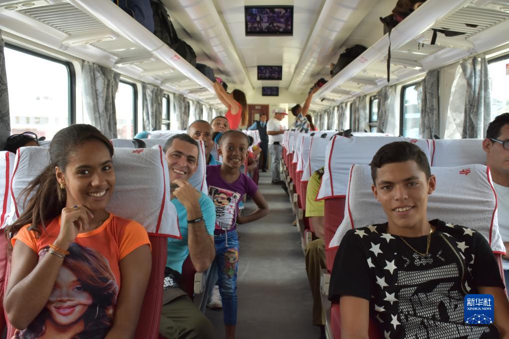 這是2019年7月13日,在古巴首都哈瓦那,乘客們坐在一列由中國設計并生產(chǎn)的鐵路客車(chē)組成的列車(chē)上。這是古巴自1975年來(lái)首次采購全新鐵路客車(chē)。這些鐵路客車(chē)投入使用,為古巴近年來(lái)推動(dòng)的鐵路系統現代化改造提供了重要保障。