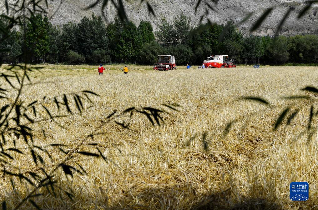 近日,西藏拉薩市曲水縣青稞成熟,人們忙著(zhù)收割青稞,感受豐收的喜悅。