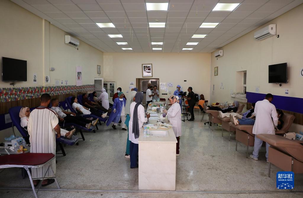 9月12日,民眾在摩洛哥馬拉喀什一家血液捐獻中心獻血。