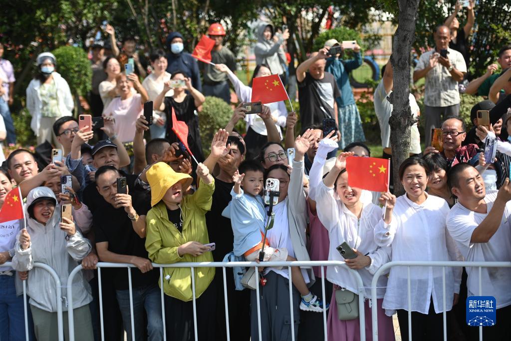 9月13日,人們沿途為火炬手喝彩。