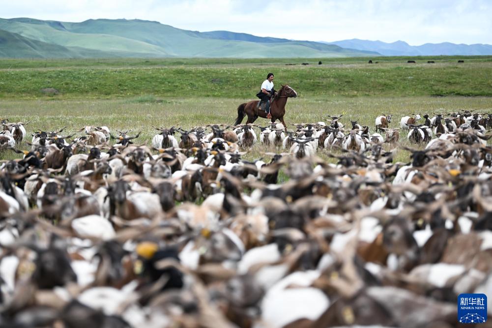 8月17日,在青海省黃南藏族自治州河南蒙古族自治縣多松鄉多松村,扎西曲培在放牧。