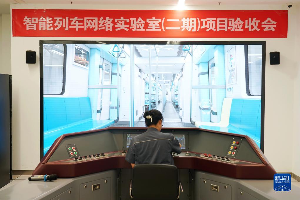 8月10日,京投裝備技術(shù)研究院的工程師通過(guò)司機操縱臺操作模擬駕駛列車(chē)。