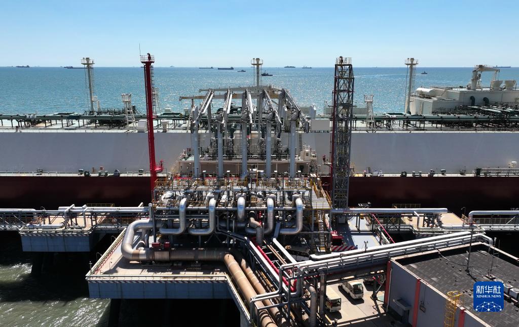 9月13日,來(lái)自卡塔爾的“米薩梅爾”號LNG輪靠泊在唐山港曹妃甸港區中國石油唐山LNG接收站碼頭卸載(無(wú)人機照片)。