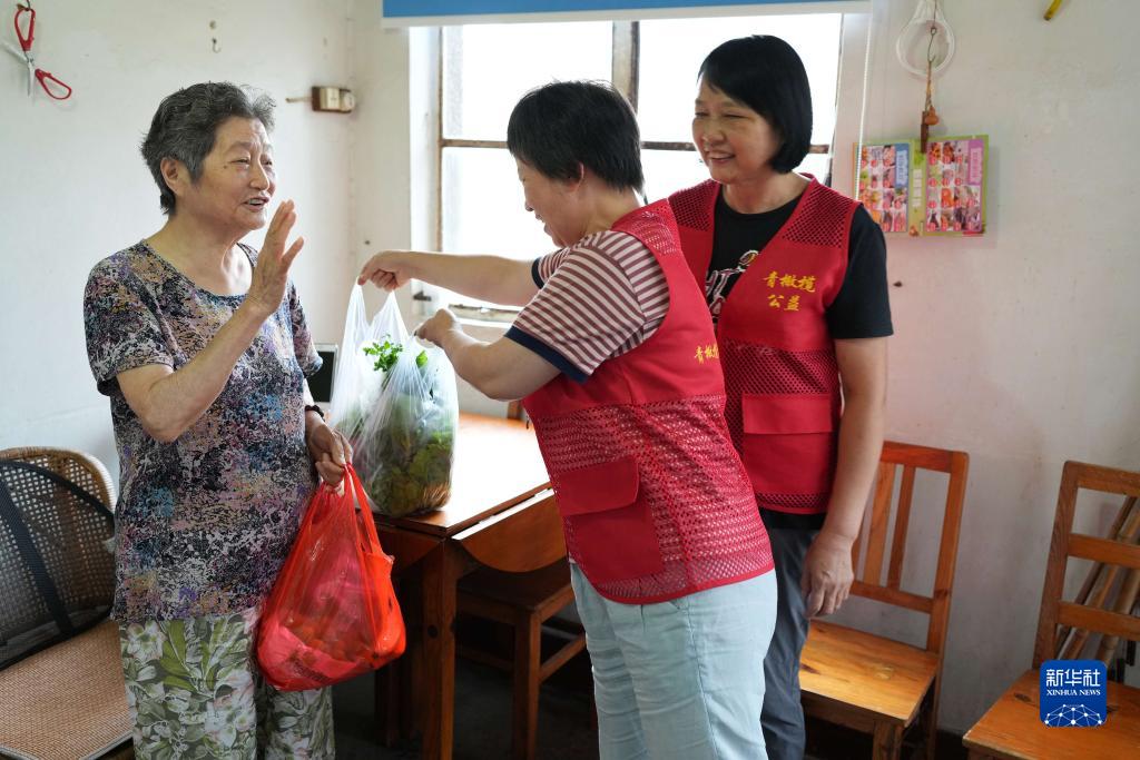 9月13日,志愿者為獨居老人代買(mǎi)菜。