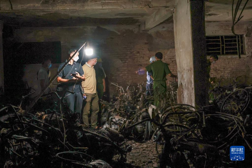 9月13日,在越南河內,工作人員在事故現場(chǎng)調查火災原因。
