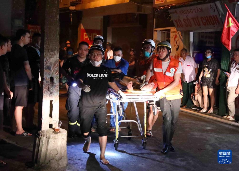 9月13日,在越南河內,救援人員從事故現場(chǎng)轉移傷者。