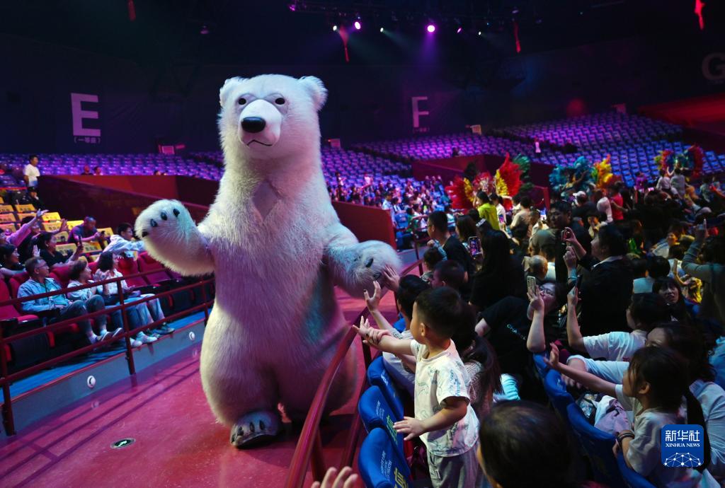 9月13日,在隆承國際馬戲度假區,演員與觀(guān)眾互動(dòng)。