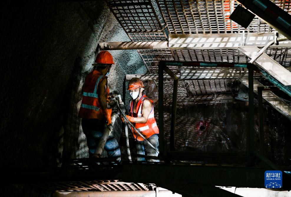 9月14日,工人在渝湘高鐵重慶至黔江段站前3標張家山隧道項目作業(yè)。