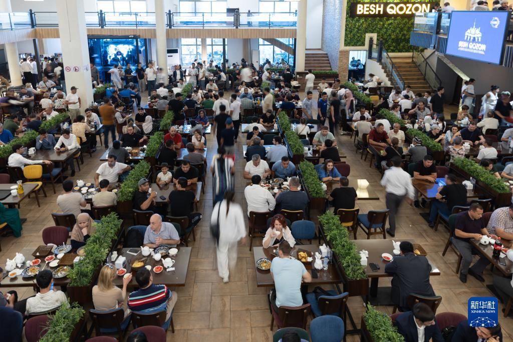 9月14日,在烏茲別克斯坦首都塔什干,人們品嘗抓飯。