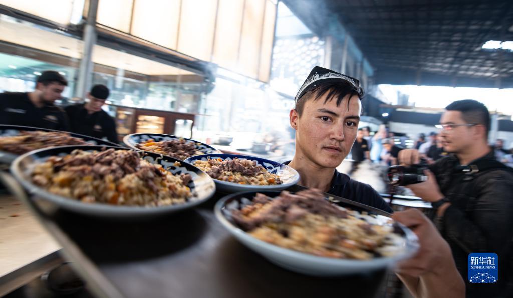 中亞抓飯中心位于塔什干電視塔附近,被人們譽(yù)為“中亞第一”抓飯中心,每天向人們提供美味的抓飯。抓飯是烏茲別克斯坦的傳統美食,其主料為大米、胡蘿卜、羊肉,不同地方的抓飯風(fēng)味各異。抓飯的制作過(guò)程講究嚴謹,主料與香料的融合令人唇齒留香,回味無(wú)窮。