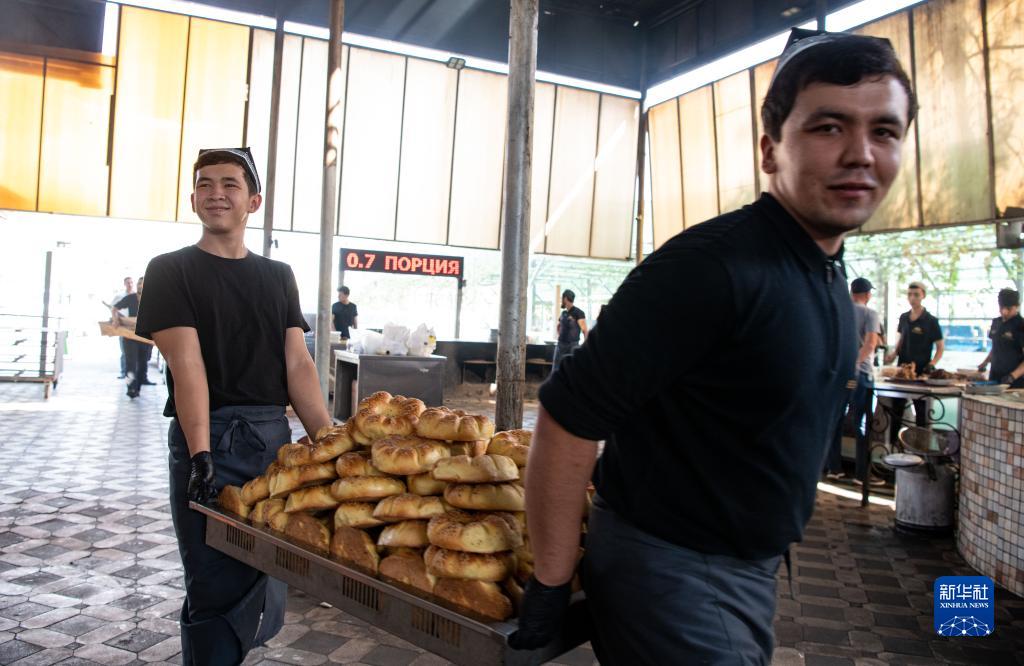 9月13日,在烏茲別克斯坦首都塔什干,工作人員運送面包。