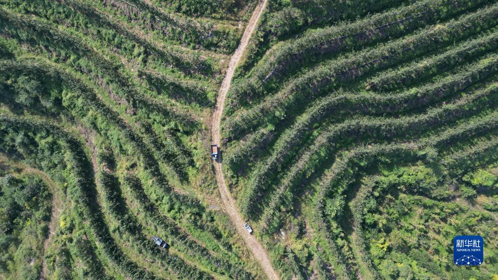 這是河北省玉田縣唐自頭鎮一處經(jīng)荒山開(kāi)發(fā)而建的果園(9月15日攝,無(wú)人機照片)。