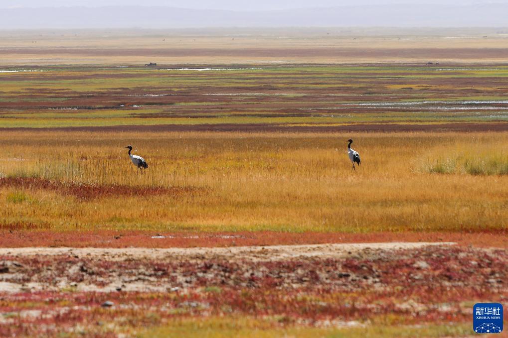 9月14日在阿爾金山國家級自然保護區拍攝的黑頸鶴。