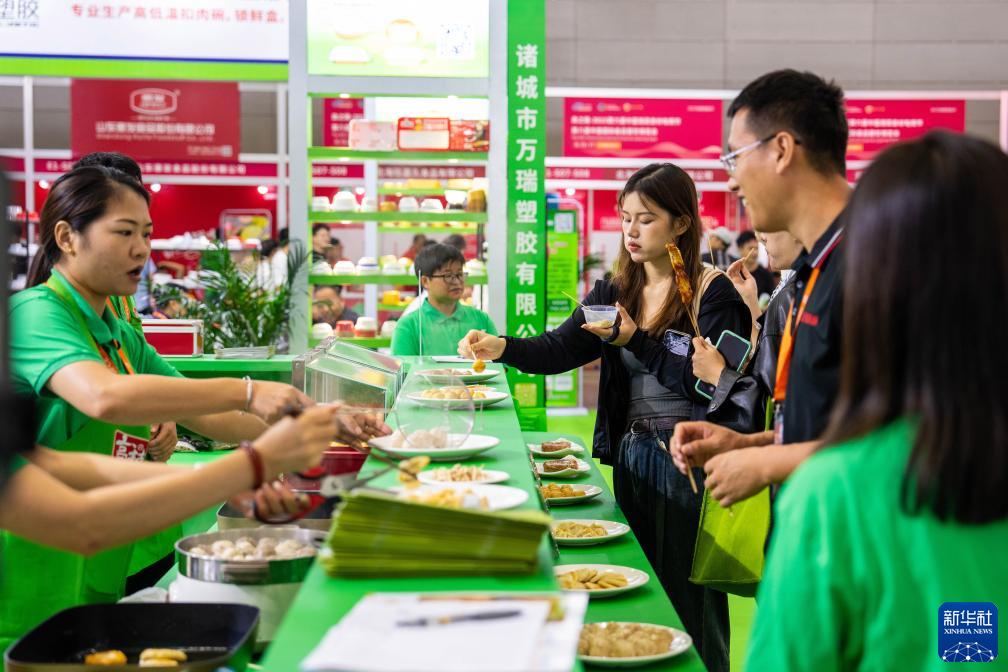 9月15日,在長(cháng)沙國際會(huì )展中心,觀(guān)眾在品嘗小吃。