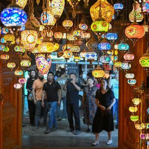 夜幕降臨,新疆喀什市中心的喀什古城景區流光溢彩,游人如織。近年來(lái),喀什市豐富夜間消費服務(wù)供給、完善夜間配套保障、打造夜生活集聚效應,激發(fā)城市夜間消費活力。