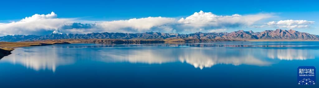 普蘭縣境內的瑪旁雍錯,遠處雪山為岡仁波齊(無(wú)人機照片,9月13日攝)。
